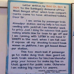 কাঁচা ইংরেজিতে লেখা হলেও সেনমহাশয়ের চিঠিখানা রেল কর্তৃপক্ষ অত্যন্ত গুরুত্ব দিয়েই বিবেচনা করেছিলেন। কারণ, ১৯০৯-১০ সালেই দূরপাল্লার ট্রেনে সবার জন্য শৌচাগারের বন্দোবস্ত হয়। দর্শকদের জন্য জরুরি তথ্য, ১৮৫৩ সালে ভারতে রেল চলাচল শুরু হলেও দীর্ঘ সাড়ে পাঁচ দশক ট্রেনগুলিতে সর্বসাধারণের জন্য শৌচালয়ের ব্যবস্থা হয়নি। প্রথম ও দ্বিতীয় শ্রেণির যাত্রীরা কেবল এই সুবিধা পেতেন। ১৮৯১ সালে তৃতীয় শ্রেণির কামরায় শৌচাগার চালু হলেও বঞ্চিত ছিলেন চতুর্থ শ্রেণির যাত্রীরা। অথচ চতুর্থ শ্রেণিতে অনেক বেশি যাত্রী যাতায়াত করতেন। অথচ রেলকর্তারা ভাবতেন, ফোর্থ ক্লাস যাত্রীরা ৫০ মাইলের বেশি সফর করবেন না, সুতরাং তাদের জন্য শৌচালয়ের প্রয়োজন নেই। কিন্তু রেল কর্তৃপক্ষের এই ধারণা যে কতটা ভুল ছিল, তা পত্রাঘাত করে বুঝিয়ে দিয়েছিলেন এক বাঙালি। সেনমহাশয়ের সেই ‘বিস্ফোরক’ চিঠিটি বর্তমানে নয়াদিল্লির রেলওয়ে মিউজিয়ামে সংরক্ষিত রয়েছে।